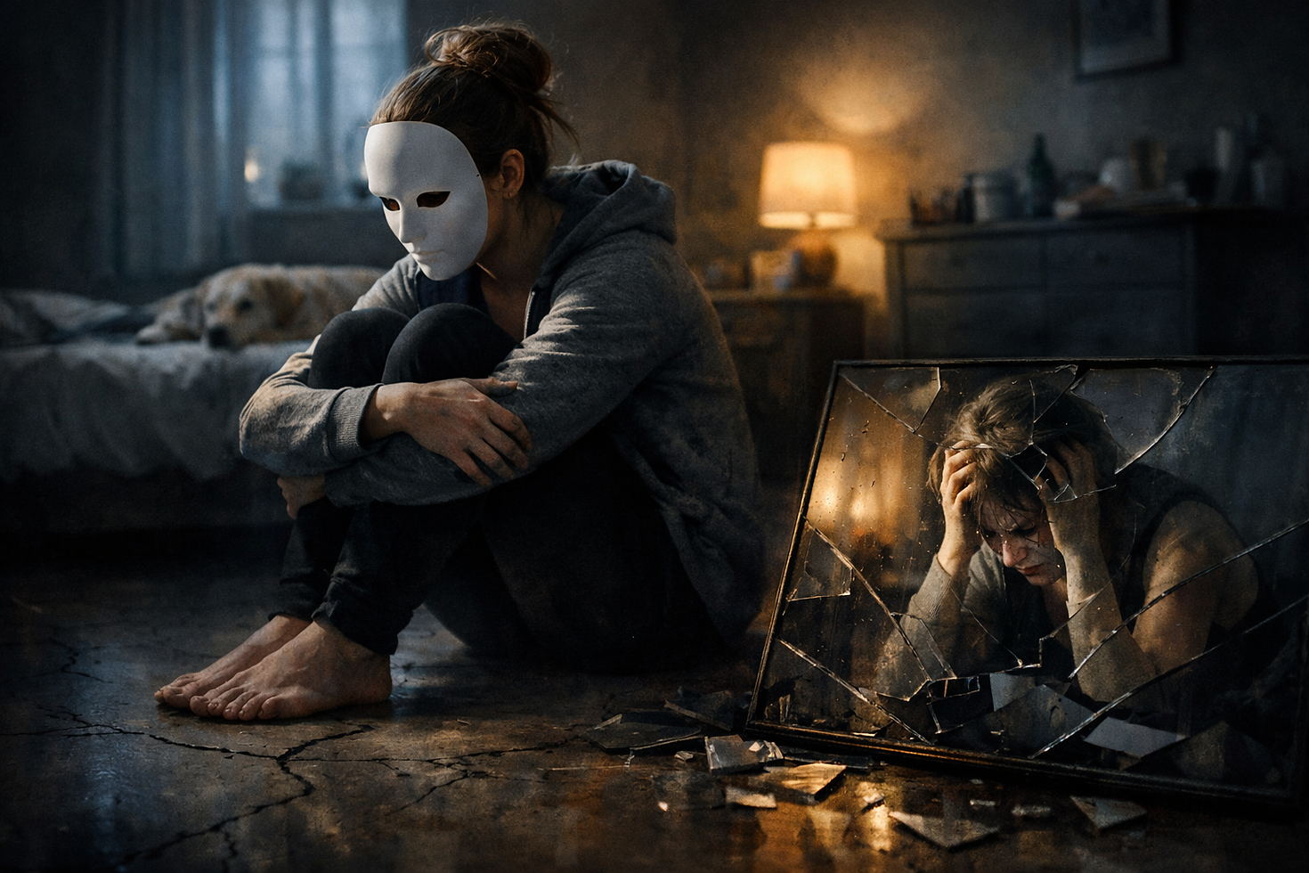 Aussen stabil und maskiert funktionieren – aber innerlich zerbrechen, wenn niemand merkt, wie es dunkler wird